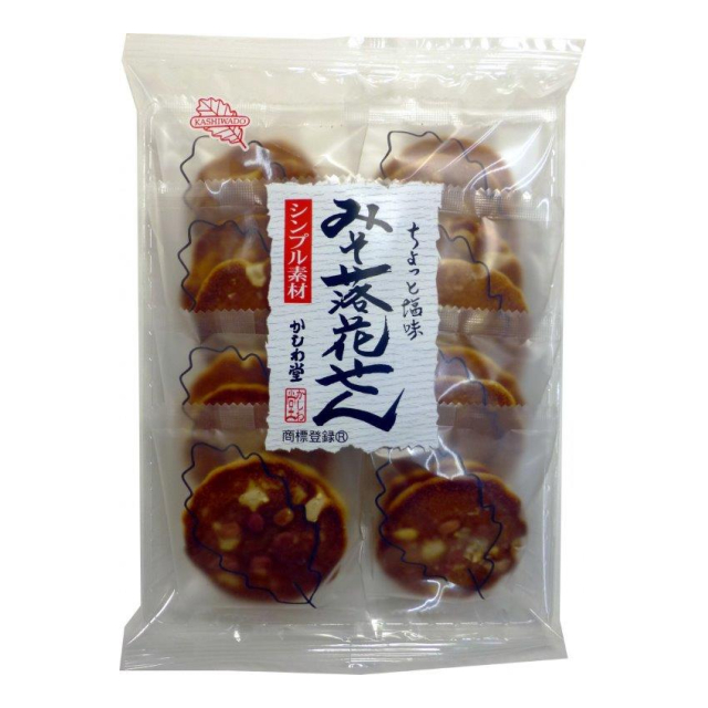 | 原材料:小麦粉(国内製造)、砂糖、落花生、鶏卵、味噌、マーガリン(大豆を含む)、蜂蜜、脱脂粉乳、食塩/膨脹剤 発売元:株式会社かしわ堂 |