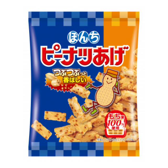 | 原材料:もち米(国内産、タイ産、米国産)、植物油脂、ピーナッツ、食塩、砂糖、かつおだし粉末、昆布粉末、チキンコンソメシーズニング(小麦・大豆・鶏肉を含む)/調味料(アミノ酸等)、香料 発売元:ぼんち株式会社 |