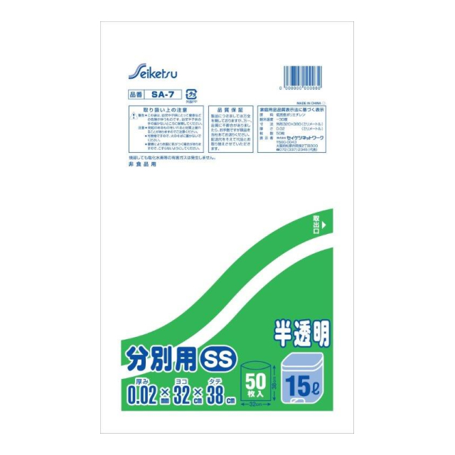 分別用SS 半透明 50枚入 SA-007 【袋】
