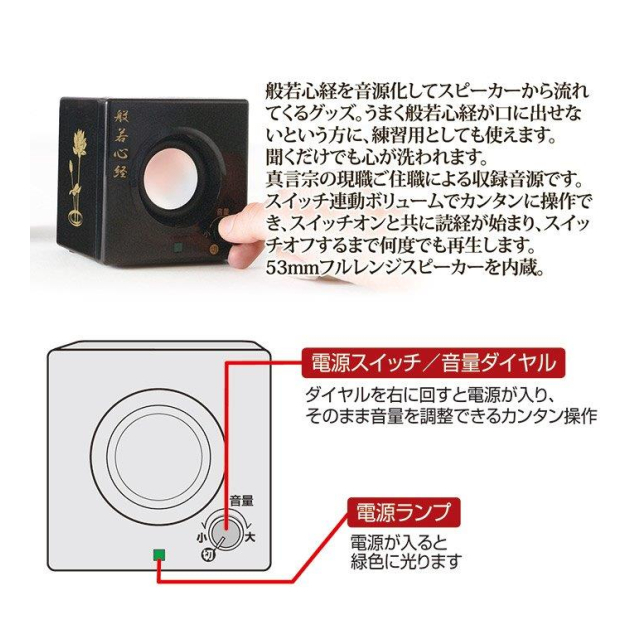 般若心経を音源化してスピーカーから流れてくるグッズ。