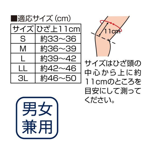 ※サイズはひざ頭の中心から上に約11cmのところを目安にして測ってください。