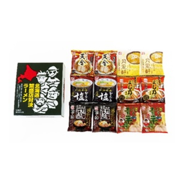 | 12食 らーめんや天金旭川醤油×2 みそらーめんのよし乃本店×2 札幌三代目月見軒味噌×2 函館北浜商店とんこつ塩×2 吉山商店焙煎ごまみそらーめん×2 旭川らぅめん青葉醤油×2 |
