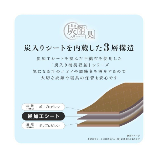 炭加工シートを挟んだ3層構造収納ケースで、気になる汗のニオイ・加齢臭を消臭!