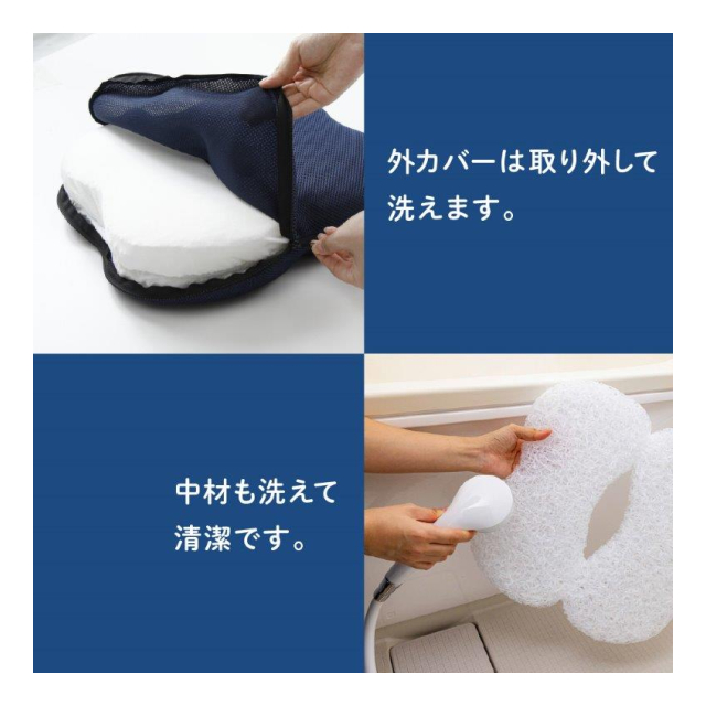 臀裂(お尻の割れ目)の形状に合わせた楕円穴設計のクッションです。