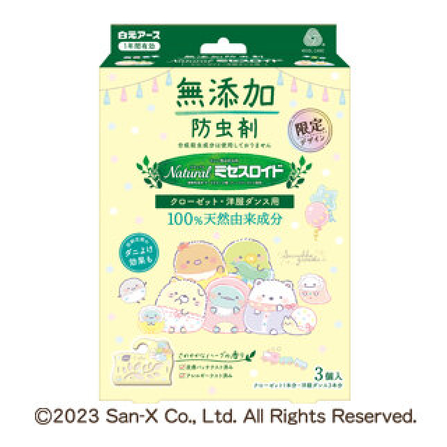すみっコぐらし Naturalミセスロイド クローゼット・洋服ダンス用 3個入 【タンス用防虫】