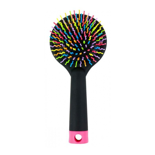 ○レインボーの波状ブラシ毛が、髪と髪の間に空気を含ませ、自然なボリューム感を生み出します。○また、クッションの弾力と先玉部分が頭皮に気持ち良く、ウェーブ、ストレートヘアなど様々なヘアスタ イルにも波型ブラシは髪にからまず、髪をきれいに整えてくれます。○ブラシの裏面はミラー付きになっているので、外出先でもブラシを使った後、すぐにチェックできます。○とかすだけでふんわりボリュームヘア。短い髪やコシのない細い髪をしっかりキャッチします。○ボリューム感にお悩みの方、くせやパーマなどでもつれてしまう方、つむじが少しずつ目立ってきた・・・ こんな方に、オススメのブラシです。ブラシが自立するので置き場所にも困りません。○先丸ピンヘッドでマッサージ効果もああります。