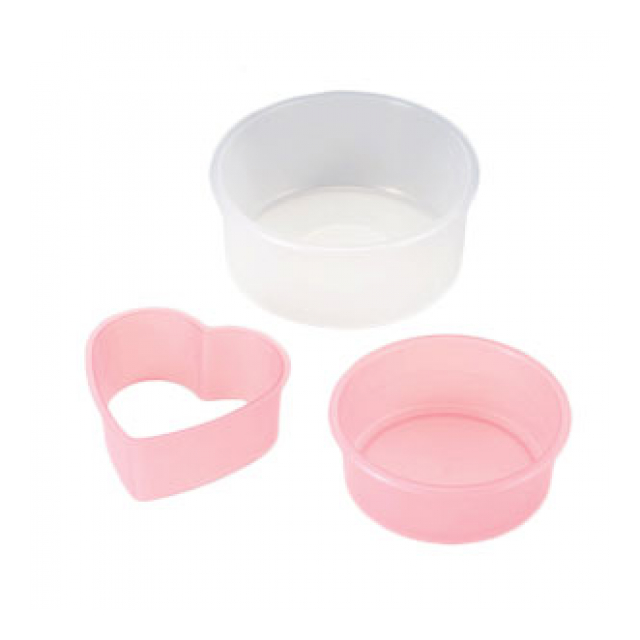 丸型とハート型の入ったデコレーションケーキ型セット。ホットケーキミックスと電子レンジを使っておいしいお菓子作り。加熱時間も短時間なので、お手軽にスポンジケーキが作れます。お好みのデコレーションでオリジナルのケーキを楽しんでみてはいかが?