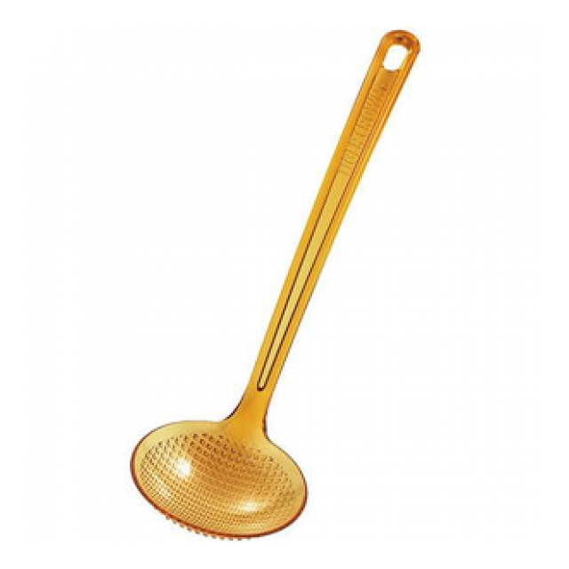 食器洗浄器で洗える耐熱204℃の卓上お玉。お玉の裏でアクをなでるだけで、突起部分に吸着。毎日のお料理に!