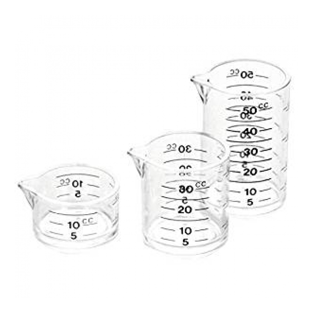 | サイズ:大/約40×45×67mm、中/約40×45×47mm、小/約40×45×27mm、3サイズ積み重ねた高さ/約136mm 本体重量:3個合計/60g 材質:メタクリル樹脂 原産国:日本 セット内容:計量カップ 3個 容量:大/50cc、中/30cc、小/10cc |
