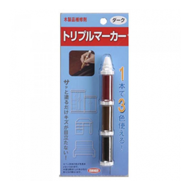 ●1本で3色使えるマーカータイプの補修用品です。●床や家具などの木製品についた小キズや色落ちなどを、着色して目立たなく仕上げます。●ペン先は太書き・細書き両方に対応。ペン本体の色がインクの色見本です。【仕様】容量:1.8cc(各色0.6cc)