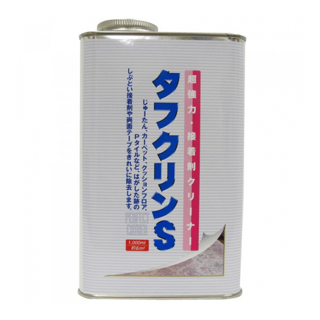 | ●成分:ケトン系(第一石油類) 1、除去する接着剤や両面テープの上に本品をゴムヘラなどでたっぷりと塗ります。2、5?10分位で接着剤が溶解し、柔らかくなりますので、添付のヘラなどで除去してください。3、接着剤が厚い場合はドライヤーで温めて作業すると効果的です。●除去できる接着剤:酢酸ビニール系(木工ボンドなど)・合成ゴム系・塩化ビニール系・ポリウレタン系・アクリル系の接着剤や両面テープ、多用途接着剤など※エポキシ系接着剤及び瞬間接着剤は除去できません。●使用できない下地:プラスティック樹脂・塗装面・Pタイル・大理石※フローリング上のワックスは取れますので使用後はワックス掛けして下さい。上記以外の下地でも必ず見えにくい所で試し塗りをして安全を確認してからご使用下さい。 製造国:日本 ●タフクリンSは床材専用の接着剤はがしです。用途以外は絶対使用しないで下さい。●中性の溶解剤ですので手や肌についても危険はありませんが、使用後は石鹸などで水洗いをして下さい。●目や口に入った時は、すぐに水洗いをし、医師の診断を受けて下さい。●フタを開けたままにしておきますと有効成分が蒸発しますので、使用後は必ず密栓しお子様の手の届かない冷暗所に保管して下さい。●使用中および使用後はよく換気をして下さい。●火気には十分注意して下さい。●ご使用前には必ず目立たない所で下地検査の上、安全性を確かめてから使用して下さい。 |