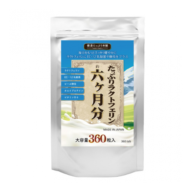 ラクトフェリン、乳酸菌(EC-12)、食用酵母、ホエイプロテイン、ビタミンB6を使用したサプリメントです。毎日の健康維持にお役立てください。