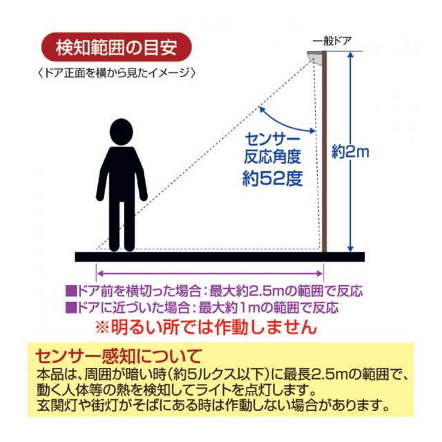 作動照度:約5ルクス以下 点灯時間:約15秒