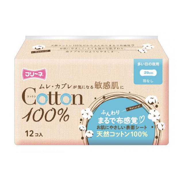 フリーネ コットン100%多い日の夜用羽なし12 FCT-003