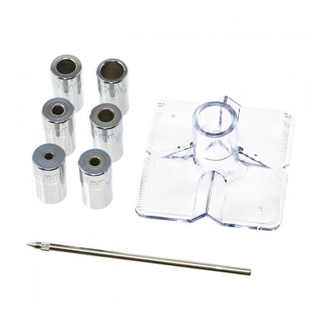 | セット内容:ガイドベース・センターポンチ・ドリルガイド(4mm/5mm/6mm/8mm/10mm/12mm) |