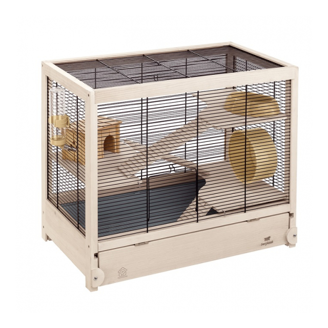 木製の風合いとスチールネットで、シンプルながら高級感があふれるハムスターゲージで、