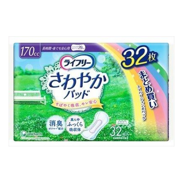 【欠品中】ライフリー さわやかパッド長時間・夜でも安心用 32枚