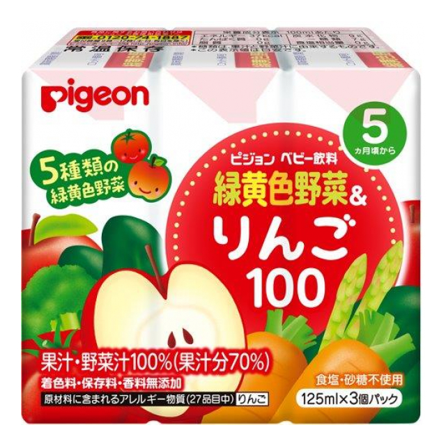 ピジョン 緑黄色野菜&りんご 125ML×3コパック
