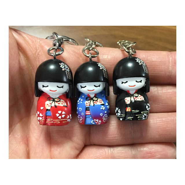 小さな舞妓さんをこけし風に仕上げた「舞こけし」のキーホルダーです。少しあどけなさが残る可愛さです。手作業による着色等は、とても細やか美しい仕上げで、穏やかな表情に思わず癒されます。京都はもちろん日本のお土産としておすすめ。小さな子供から大人まで、海外の方にも大人気です。