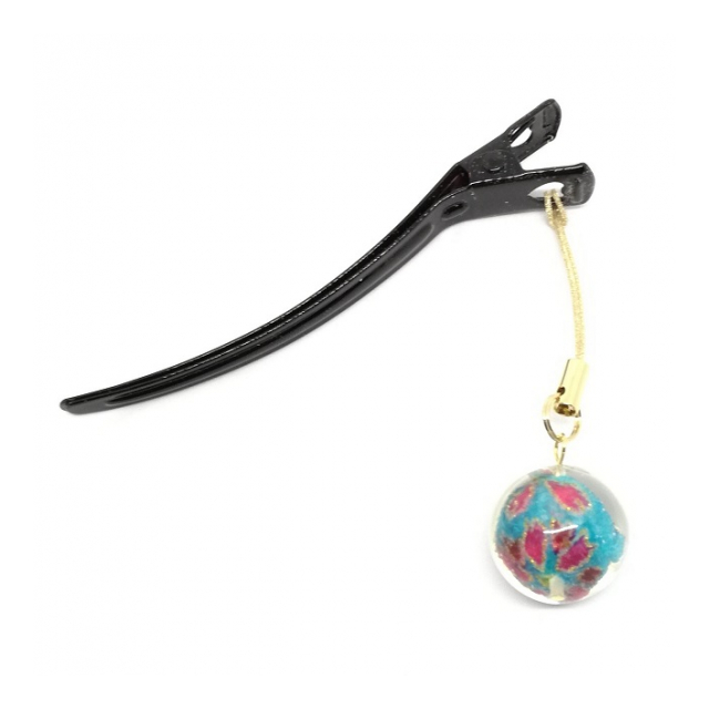 和柄のちりめん玉を樹脂で包んだ和風モダンな飾り、クリップタイプなので使いやすく普段使いにもお使いいただけます。