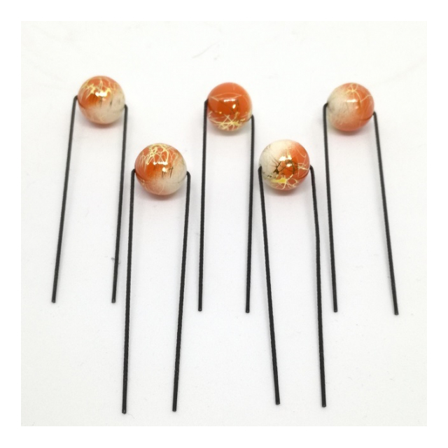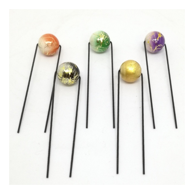 | カラーパール玉:約1.4cm 足部分長さ:約6.5cm 同色5本入り |
