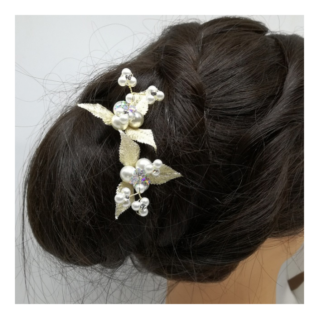 パールとラインストーンを使ったUピンタイプの髪飾り。