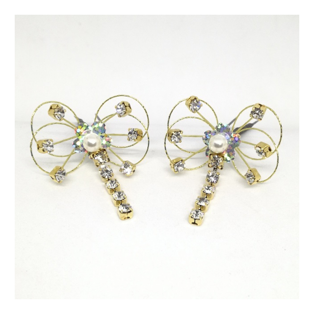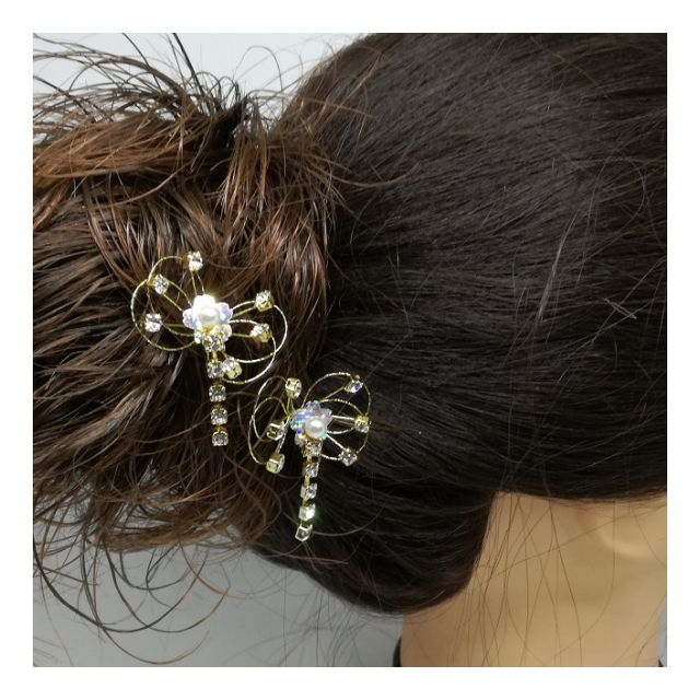 パールとラインストーンを使ったUピンタイプの髪飾り。