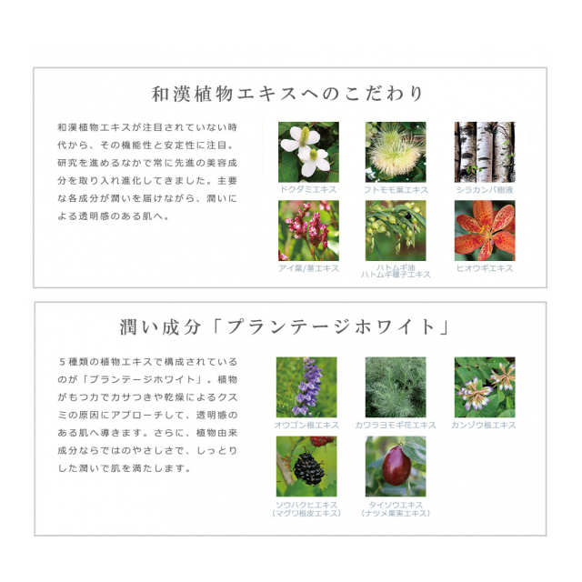『和漢植物エキス』=パッと輝く透明感とみずみずしさをお望みの方へ。