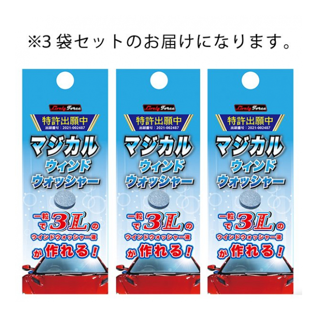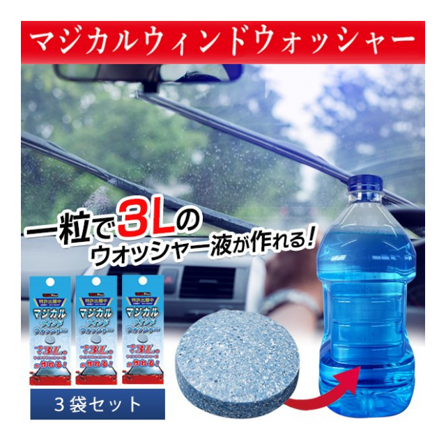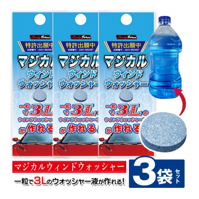 3袋セット マジカル ウィンドウォッシャー 錠剤 ウォッシャー液 1粒で3L 作れる 魔法の錠剤 3個セット 成分 界面活性剤 窓ふき 拭き掃除 使用可 カー用品 メンテナンス 洗車用品 ◇ MWウォッシャー