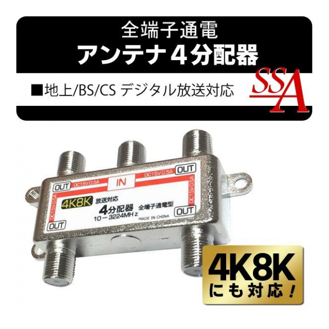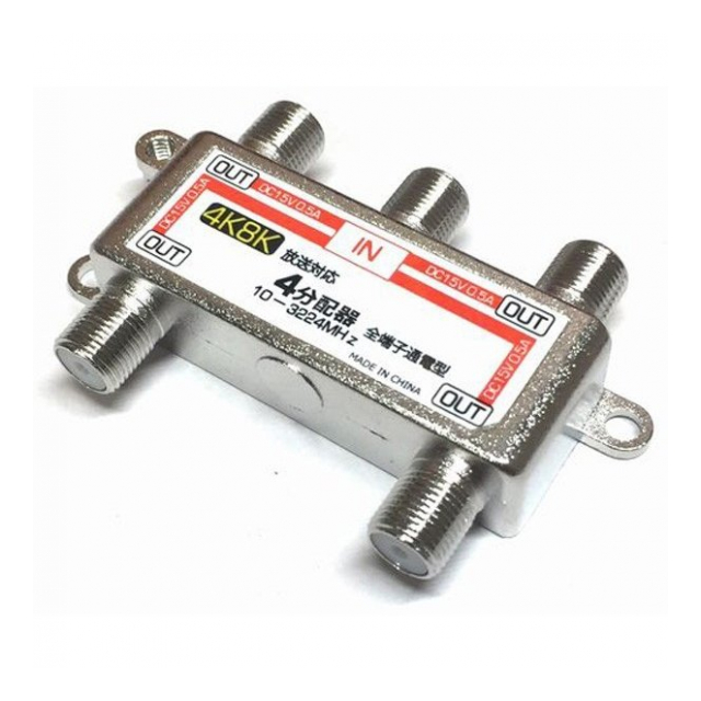 4K 8K 対応全通電型 アンテナ4分配器 アンテナ分配器 4分配器 地上/BS/CS デジタル放送対応 DC15V 0.5A (検索: 分配機 液晶テレビ テレビ レコーダー PC チューナー 家電 工具 パーツ ) ◇ 4K8Kの4分配器