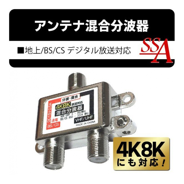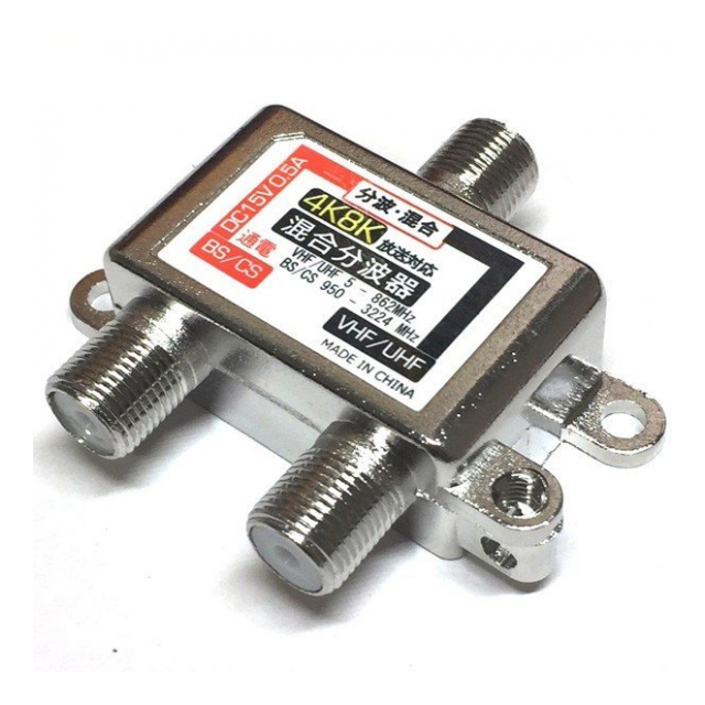 4K 8K 対応 分波器 テレビ アンテナ混合分波器 地上 / BS / CS デジタル放送対応 VHF/UHF/BS/CS (検索: 分配機 液晶テレビ テレビ レコーダー PC チューナー 家電 工具 パーツ ) DC15V 0.5A ◇ 4K8Kの混合分波器