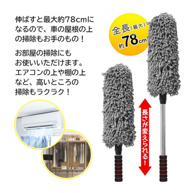 伸縮モップ 78cm ほこり取り 洗える はたき 車用ほこり取り モップ ボディ 車の屋根 キズつかない 伸びる ハンドモップ モップダスター 洗車用品 掃除用品 掃除道具 スマート ロングモップ エアコン シーリングファン 照明 高所 ◇ 車ほこり取モップ