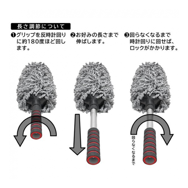 | 全長 最短:(約)54cm 最長:(約)78cm モップ部分長さ(約)36cm グリップ部分サイズ(約)直径3.2×長さ10.5cm |