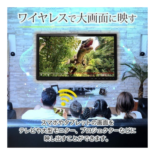 インターネット環境下でスマホ、タブレットの画面をテレビや大型ディスプレイ、モニター、プロジェクターなどにワイヤレスで映し出すことができます。