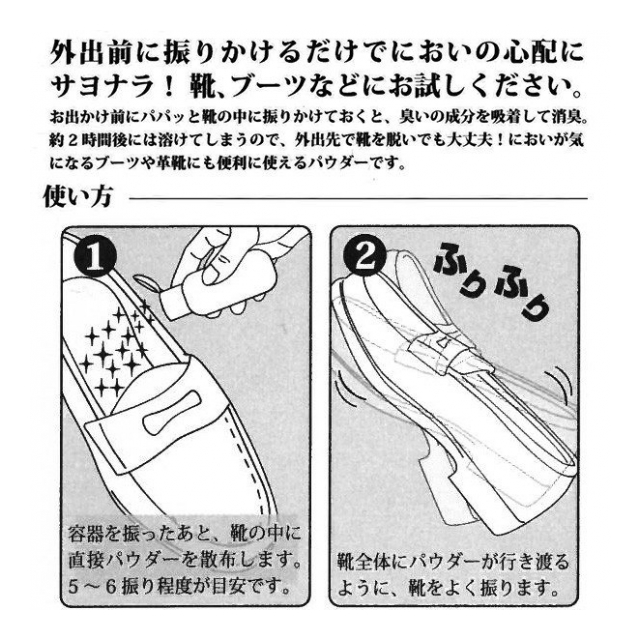 靴にふりかけるだけの消臭パウダー!