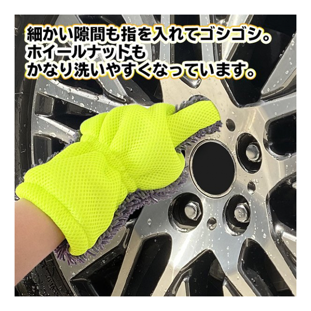 ホイール 洗車 グローブ 5本指 左右共通 左利き も使える 洗車グローブ 素手感覚 水洗い 汚れ落ちる タイヤ ホイール 洗車ブラシ ピカピカ 磨き残しなし 洗浄グローブ 洗濯可 手袋型 洗車モップ 掃除用品 メンテナンス ◇ ホイール洗車グローブ