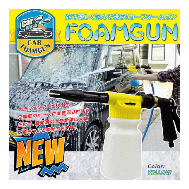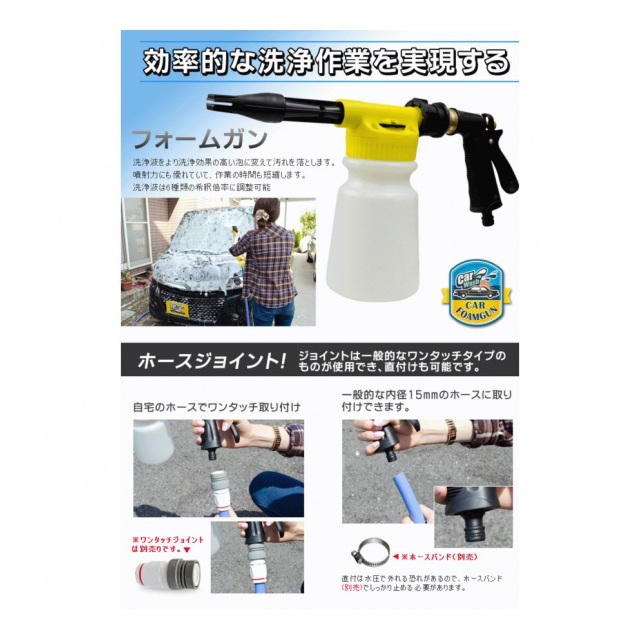 ご家庭でも簡単に泡洗車が楽しめる車洗浄機フォームガン。