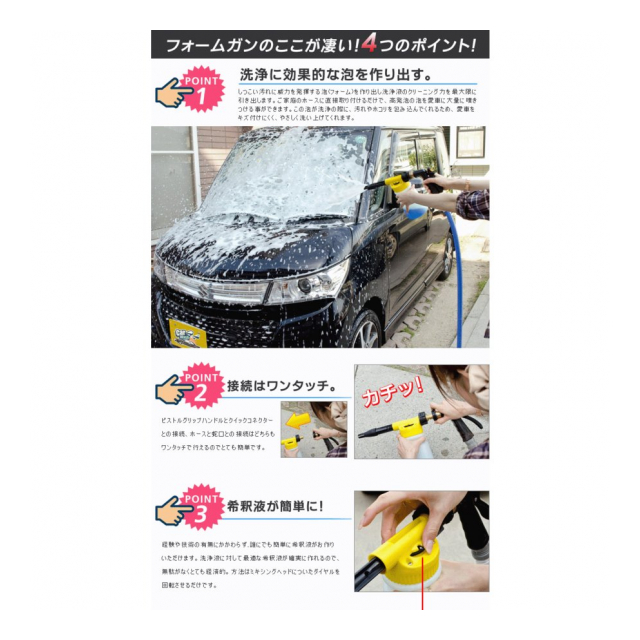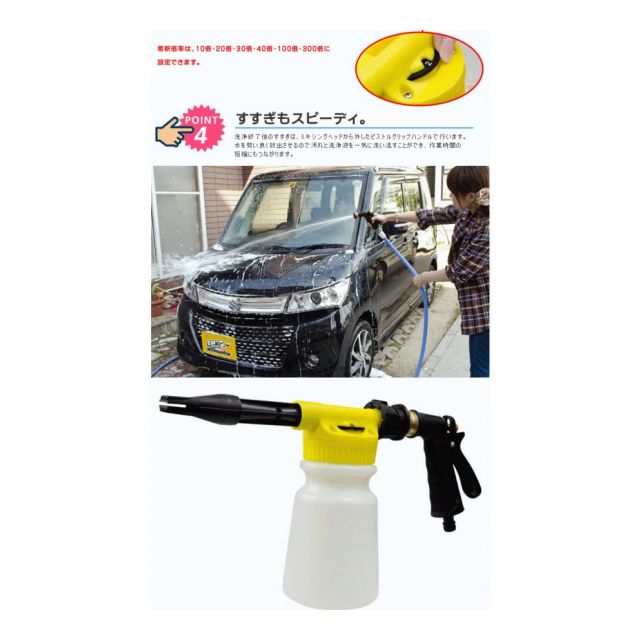 希釈倍率もダイヤルで簡単に調整できます。 愛車をやさしく洗うためには何といっても泡洗車。