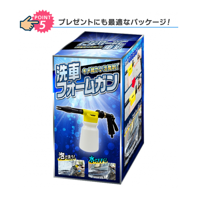高発泡の泡を愛車に大量に噴きつける事ができます。