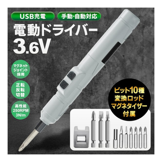 電動ドライバー 手動ドライバー 充電式ワイヤレス ドライバー プラス マイナス ビット10種付き 正転 逆転 切替 USB充電 多機能ドライバー 工具 ネジ締め DIY 修理 修繕 ◇ リブラ12Pドライバー
