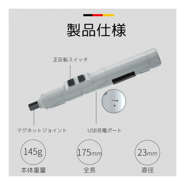 | 本体サイズ 全長(約)175mm、直径(約)23mm 本体重量 (約)145g |