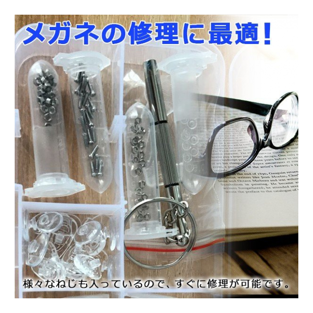 メガネ修理キット ネジセット ドライバー付き 専用ケース入り 眼鏡修理工具 メガネ修理セット 眼鏡フレーム修理 セット ◇ 眼鏡修理セット