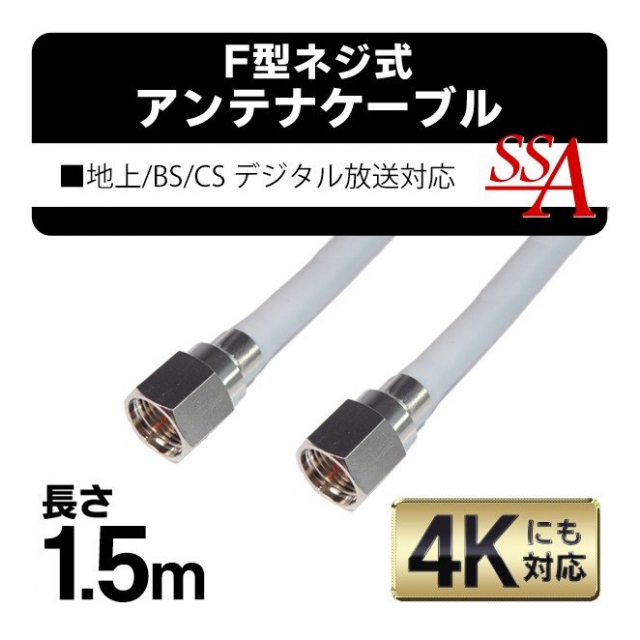 F型 4K 対応 アンテナケーブル ネジ式 4C アンテナケーブル 1.5m 150cm 地上 BS CS デジタル放送対応! 1.5m アンテナケーブルコネクター (検索: F型コネクター 4K 対応 テレビ ) ◇ SSAネジ式4Cケーブル1.5m