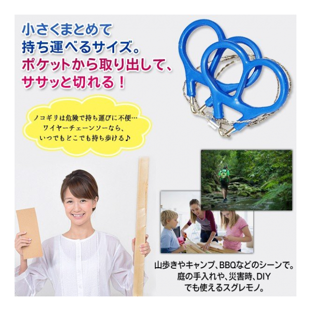 こちらのワイヤーチェーンソーなら、いつでも手軽にどこでも持ち歩けて
