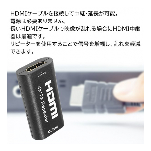 長いHDMIケーブルで映像が乱れる場合にHDMI中継器は最適です。