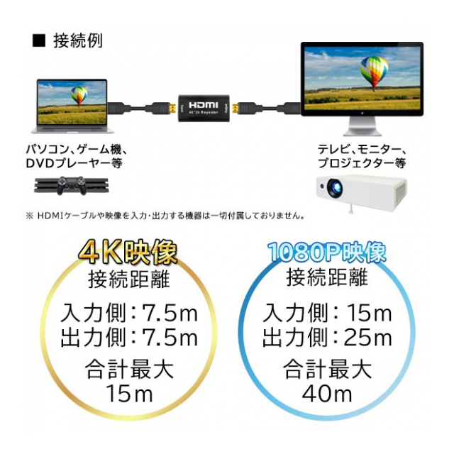 1080p映像の場合は最大接続距離40mまで延長が可能。