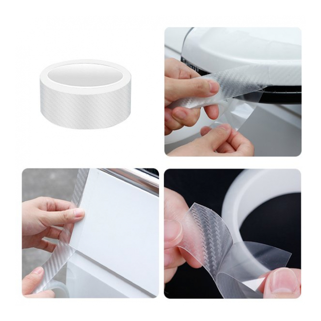 カーボン調テープ 5m × 5cm幅 カスタマイズ ドレスアップ 車内装 外装 キズ防止テープ おしゃれ 車ステッカー インテリア 施工 補修テープ 透明 クリア 黒 DIY カーボンシート テープタイプ マルチテープ 保護テープ カー用品 ◇ カーボン調