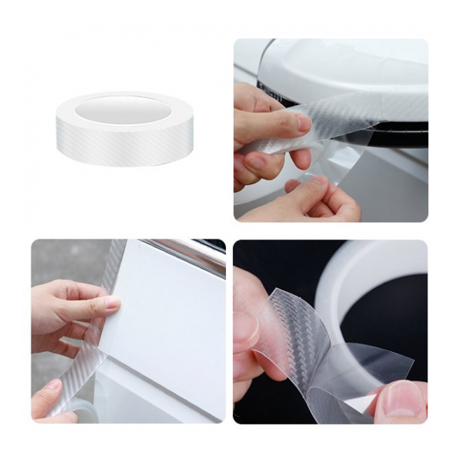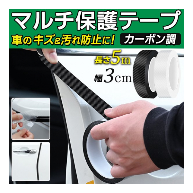 キズ防止テープ おしゃれ カーボン調テープ 5m × 3cm幅 カスタマイズ ドレスアップ 車ステッカー 車内装 外装 インテリア 施工 補修テープ 透明 クリア 黒 DIY カーボンシート テープタイプ マルチテープ 保護テープ カー用品 ◇ カーボン調