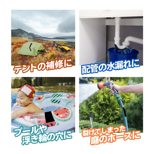 防水テープ 幅100mm ×1.5m 水漏れ エアー漏れ 応急テープ 粘着テープ 屋外 強力補修テープ ガラス 水槽 ひび割れ 浮き輪 ビニールプール エアー漏れ 補修 DIY アウトドア 工具 ◇ 復活テープ