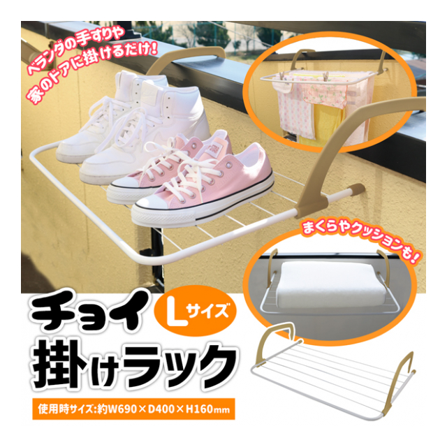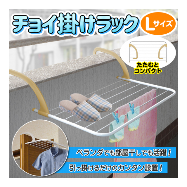 ベランダ 物干し 省スペース 手すり 扉 壁の梁(はり) チョイ掛けラック Lサイズ 引っ掛け どこでも干せる 部屋干し タオルハンガー 物干しハンガー デッドスペース 物干しスタンド 物干し台 梅雨対策 収納ラック 洗濯用品 便利 ◇ チョイ掛けラック:L